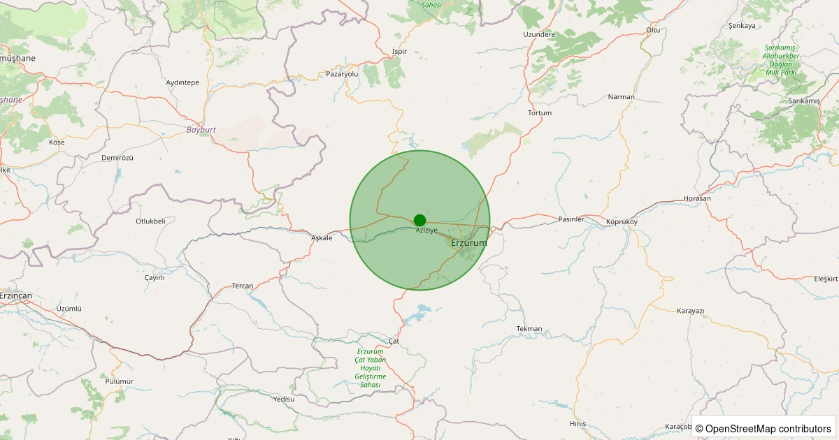 Son 7 gün içinde Aziziye - Kuşçu noktasından 100 km yarıçap içerisinde meydana gelen diğer depremler: