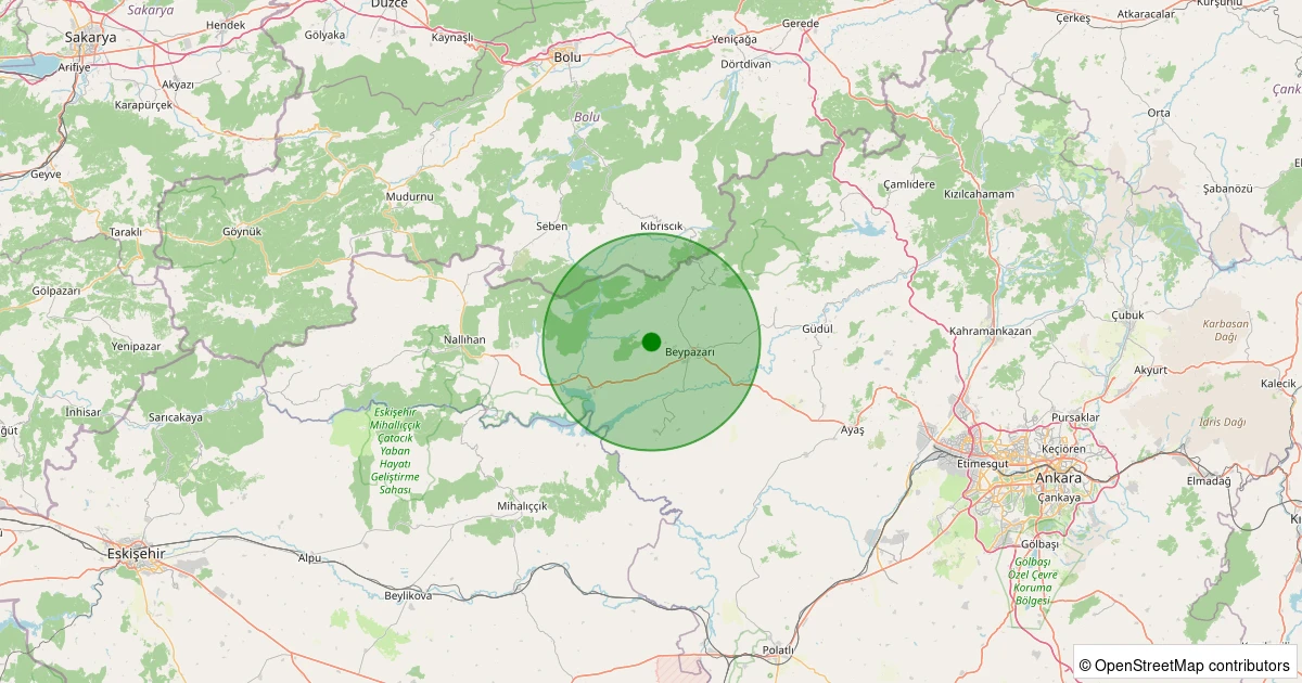 Son 7 gün içinde Beypazarı - Çakıloba noktasından 100 km yarıçap içerisinde meydana gelen diğer depremler:
