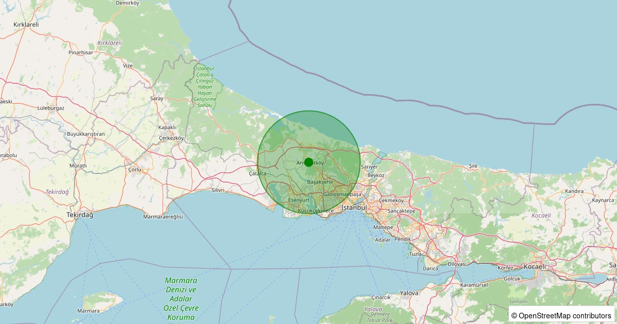 Son 7 gün içinde Arnavutköy noktasından 100 km yarıçap içerisinde meydana gelen diğer depremler: