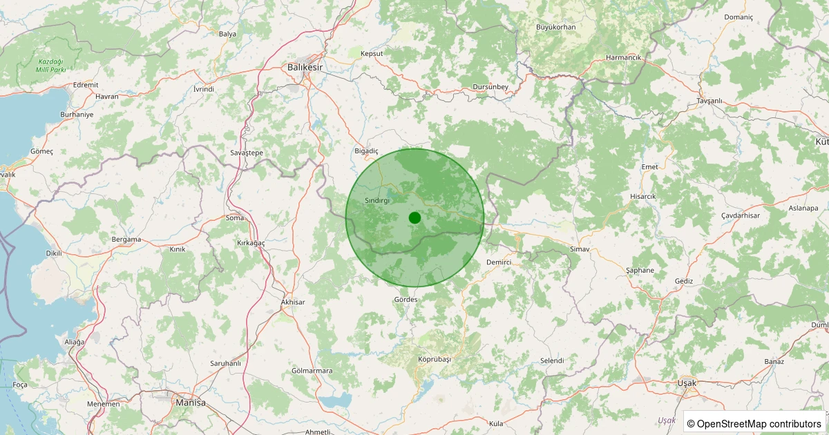 Son 7 gün içinde Sındırgı - Büyükdağdere noktasından 100 km yarıçap içerisinde meydana gelen diğer depremler:
