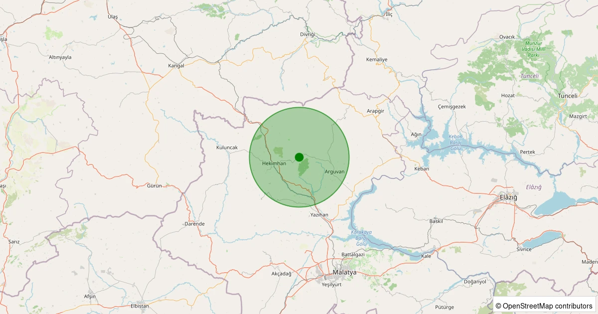 Son 7 gün içinde Hekimhan - İğdir Köyü noktasından 100 km yarıçap içerisinde meydana gelen diğer depremler: