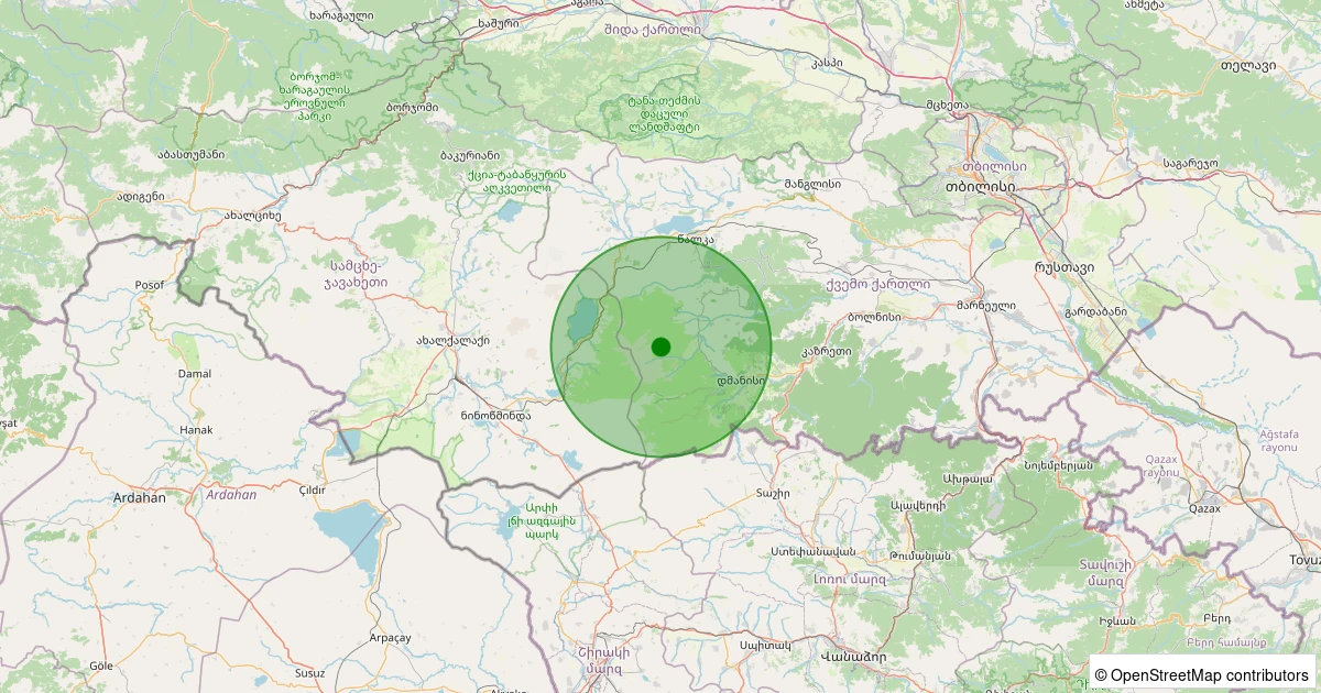 Son 7 gün içinde Dmanisi, Kvemo Kartli (Gürcistan) - [57.77 km] Akyaka (Kars) noktasından 100 km yarıçap içerisinde meydana gelen diğer depremler: