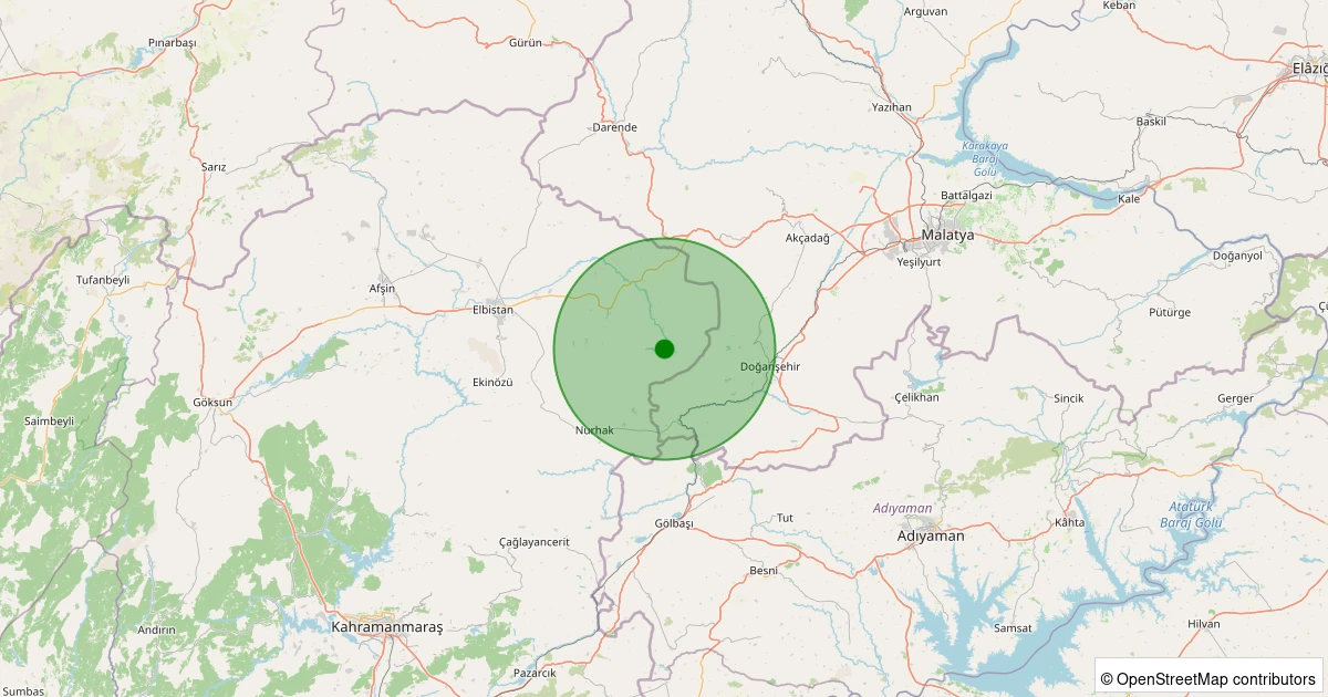 Son 7 gün içinde Elbistan - Karahasanuşağı Köyü noktasından 100 km yarıçap içerisinde meydana gelen diğer depremler: