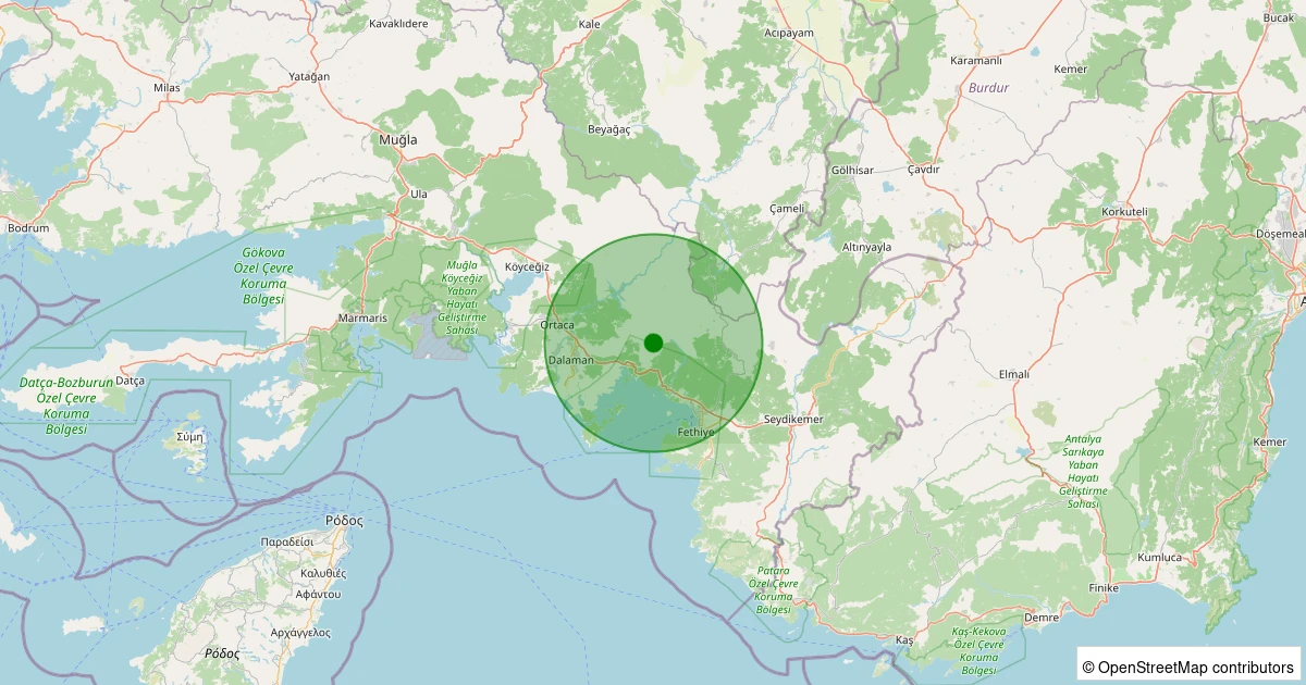 Son 7 gün içinde Fethiye - Karacaören noktasından 100 km yarıçap içerisinde meydana gelen diğer depremler: