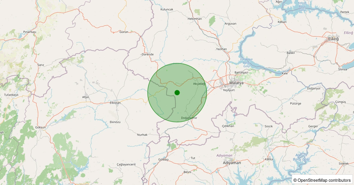 Son 7 gün içinde Akçadağ - Çevirme noktasından 100 km yarıçap içerisinde meydana gelen diğer depremler: