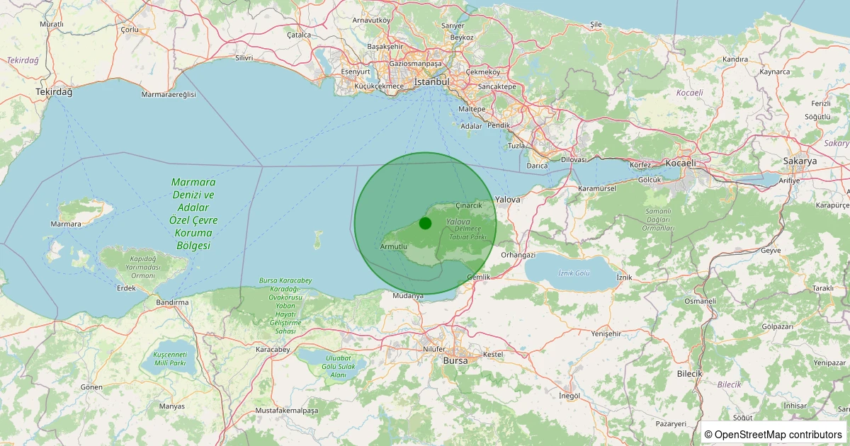 Son 7 gün içinde Çınarcık - Esenköy noktasından 100 km yarıçap içerisinde meydana gelen diğer depremler: