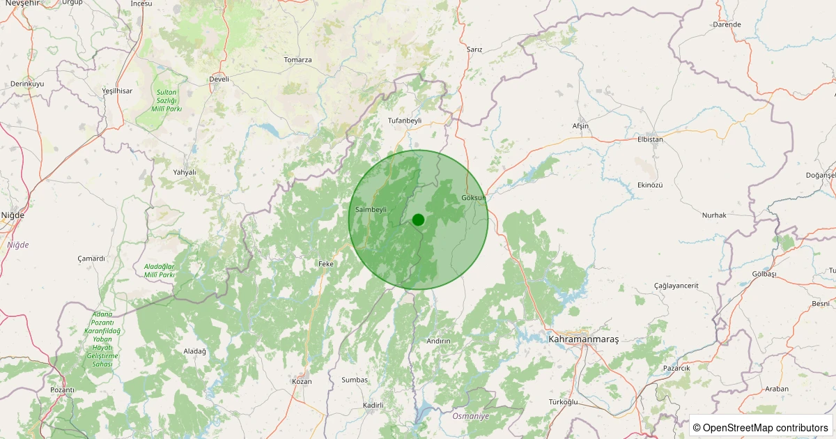 Son 7 gün içinde Göksun - Kaleboynu noktasından 100 km yarıçap içerisinde meydana gelen diğer depremler: