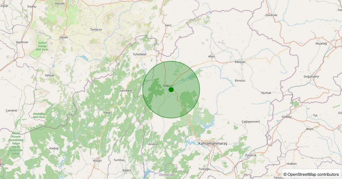 Son 7 gün içinde Göksun noktasından 100 km yarıçap içerisinde meydana gelen diğer depremler: