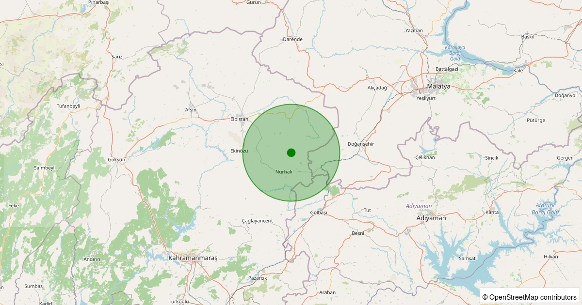 Son 7 gün içinde Elbistan - Karahasanuşağı Köyü noktasından 100 km yarıçap içerisinde meydana gelen diğer depremler: