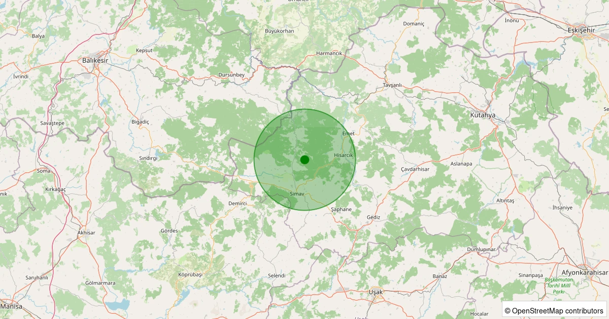 Son 7 gün içinde Simav - Yemişli Köyü noktasından 100 km yarıçap içerisinde meydana gelen diğer depremler: