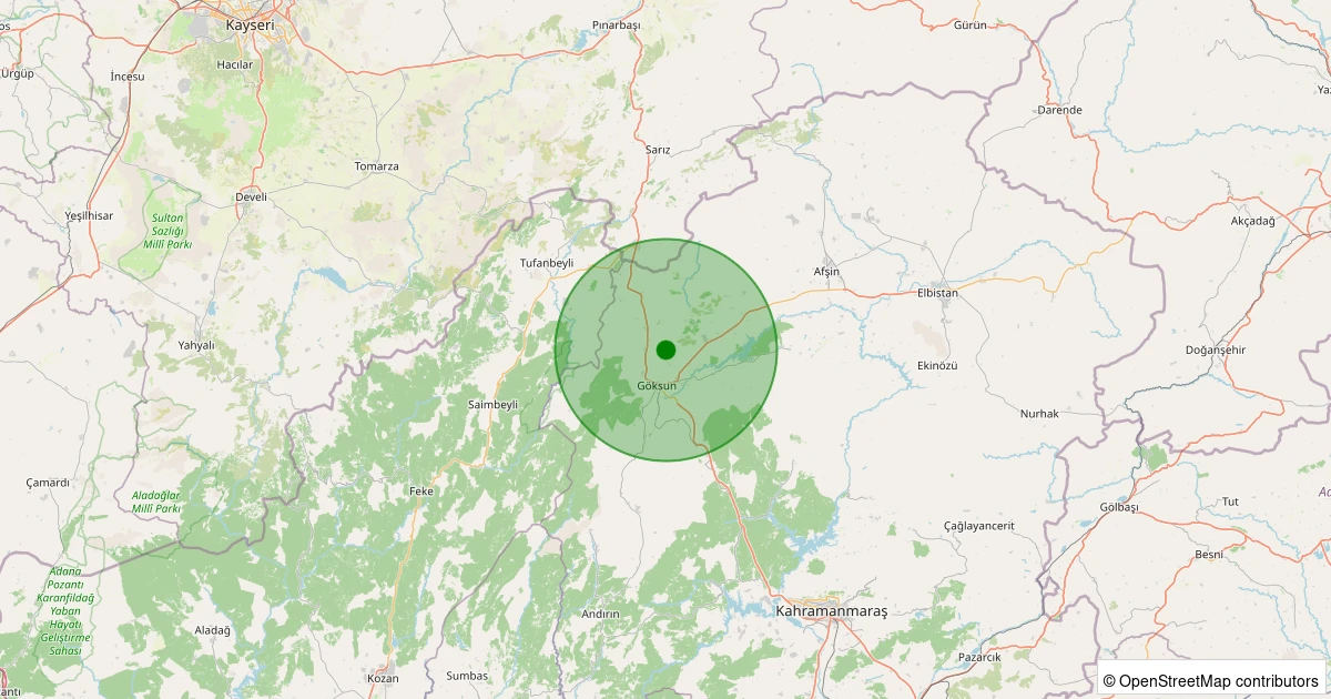 Son 7 gün içinde Göksun noktasından 100 km yarıçap içerisinde meydana gelen diğer depremler: