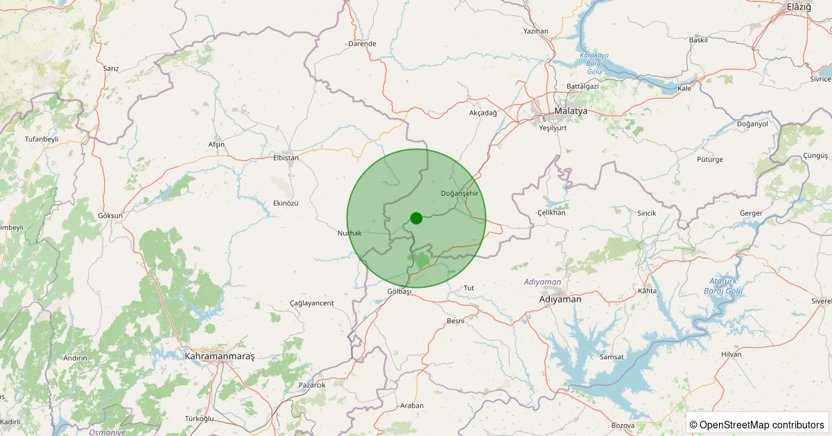 Son 7 gün içinde Doğanşehir - Küçüklü noktasından 100 km yarıçap içerisinde meydana gelen diğer depremler: