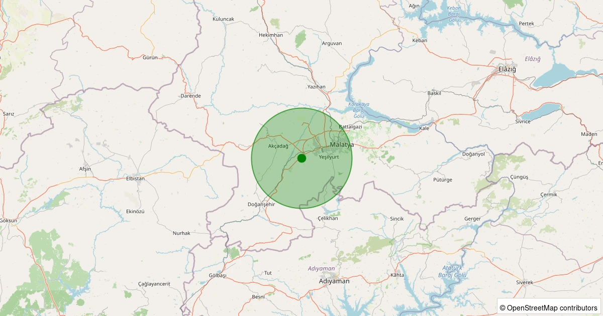 Son 7 gün içinde Akçadağ - Karapınar noktasından 100 km yarıçap içerisinde meydana gelen diğer depremler: