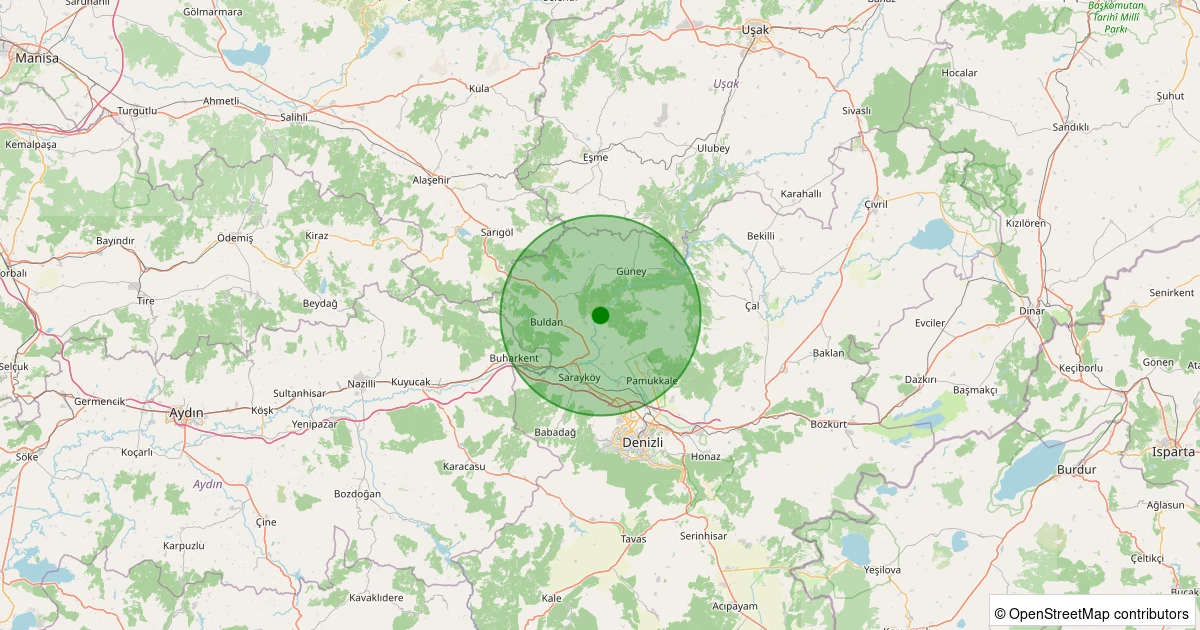 Son 7 gün içinde Buldan - Yenicekent noktasından 100 km yarıçap içerisinde meydana gelen diğer depremler: