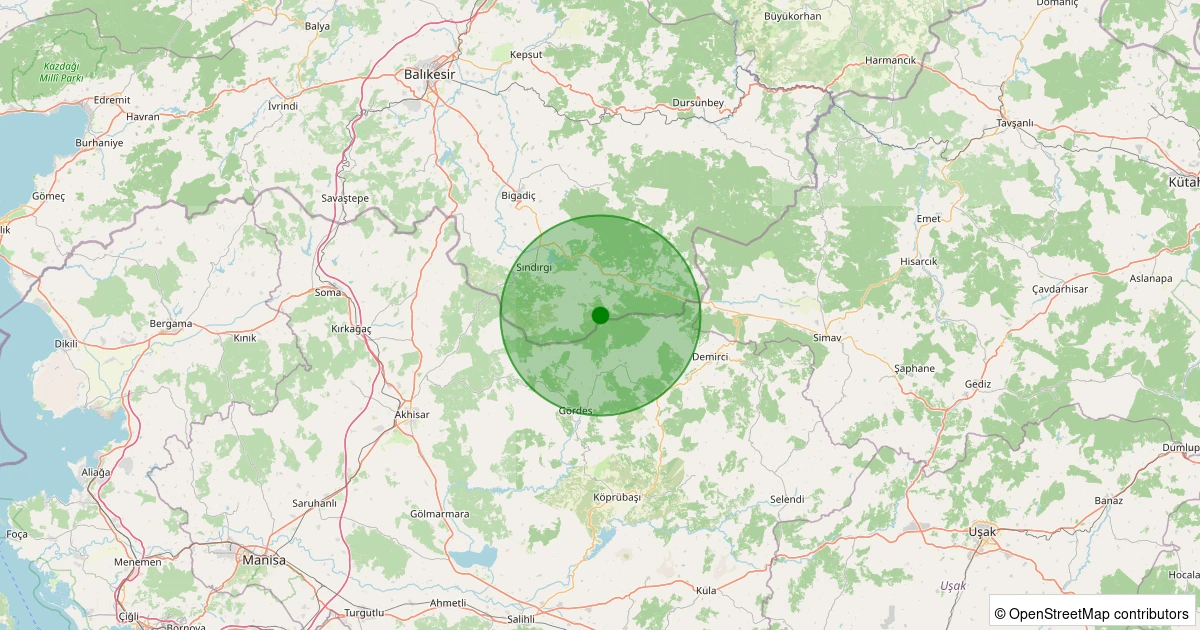 Son 7 gün içinde Sındırgı - Yaylabayır noktasından 100 km yarıçap içerisinde meydana gelen diğer depremler: