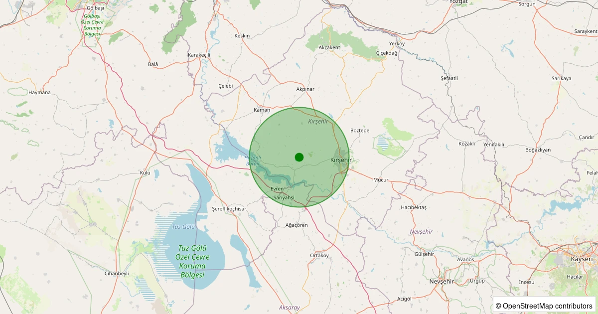 Son 7 gün içinde Kırşehir noktasından 100 km yarıçap içerisinde meydana gelen diğer depremler: