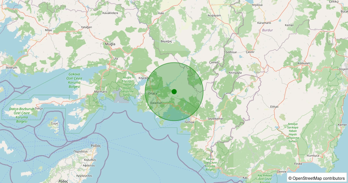Son 7 gün içinde Dalaman - Elcik noktasından 100 km yarıçap içerisinde meydana gelen diğer depremler: