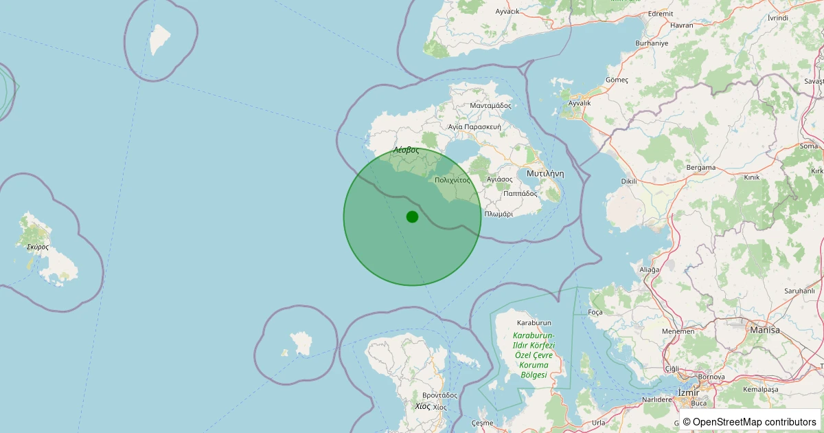 Son 7 gün içinde MIDILLI noktasından 100 km yarıçap içerisinde meydana gelen diğer depremler: