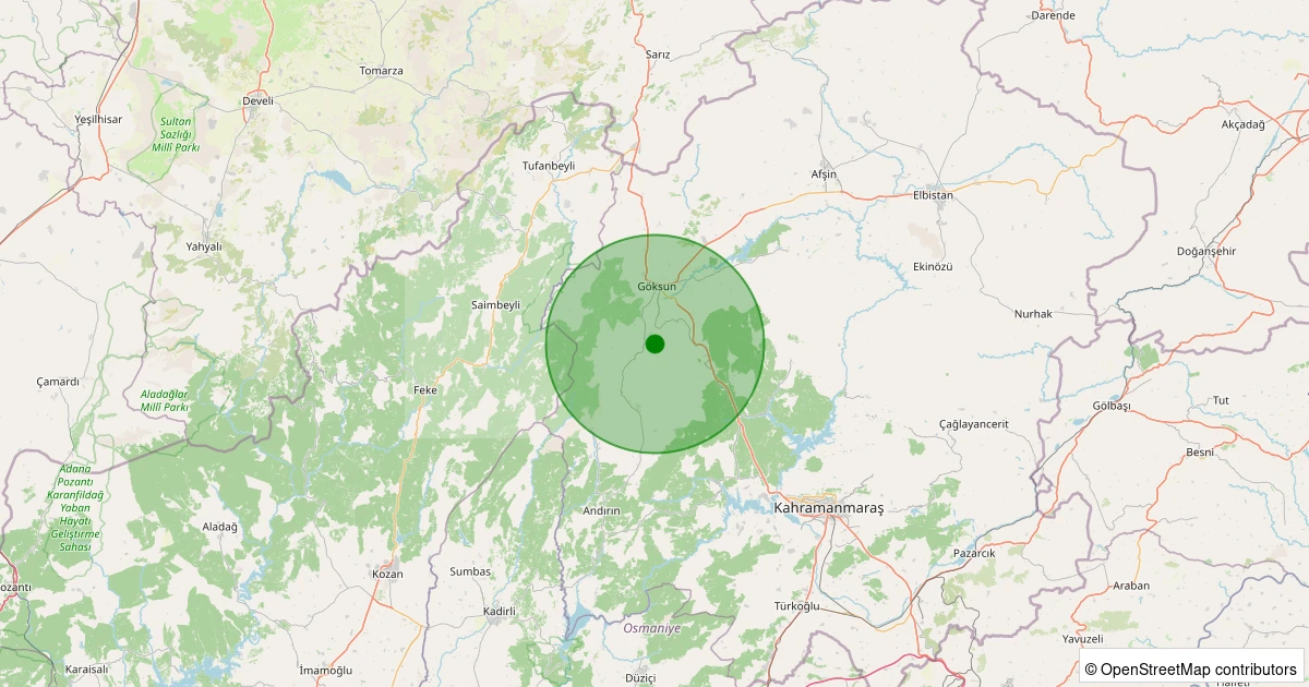 Son 7 gün içinde Göksun noktasından 100 km yarıçap içerisinde meydana gelen diğer depremler: