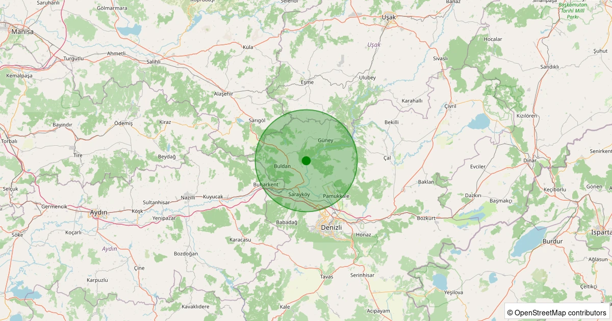 Son 7 gün içinde Buldan - Yenicekent noktasından 100 km yarıçap içerisinde meydana gelen diğer depremler: