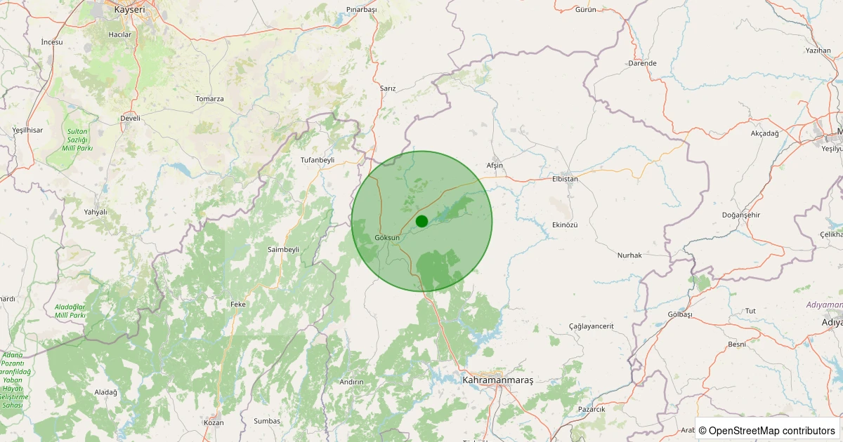 Son 7 gün içinde Göksun - Küçüksu noktasından 100 km yarıçap içerisinde meydana gelen diğer depremler: