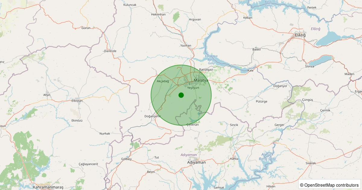 Son 7 gün içinde Yeşilyurt - Cafana noktasından 100 km yarıçap içerisinde meydana gelen diğer depremler: