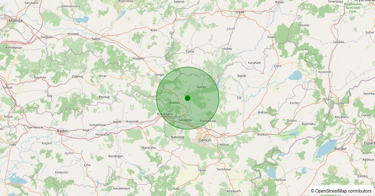 Son 7 gün içinde Buldan - Yenicekent noktasından 100 km yarıçap içerisinde meydana gelen diğer depremler: