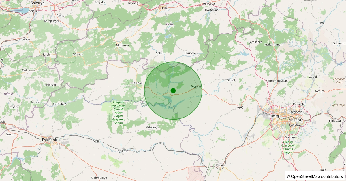 Son 7 gün içinde Nallıhan - Uluköy noktasından 100 km yarıçap içerisinde meydana gelen diğer depremler: