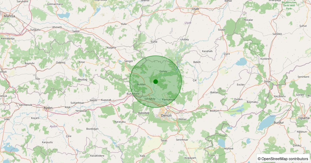 Son 7 gün içinde Buldan - Yenicekent noktasından 100 km yarıçap içerisinde meydana gelen diğer depremler: