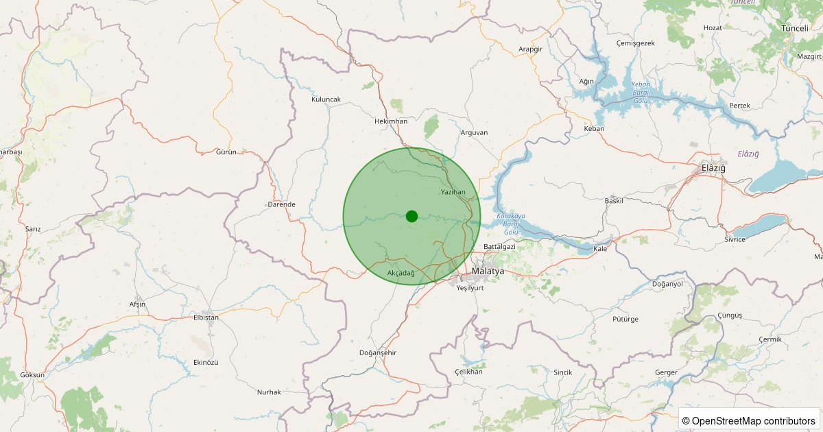 Son 7 gün içinde Yazıhan - İriağaç noktasından 100 km yarıçap içerisinde meydana gelen diğer depremler:
