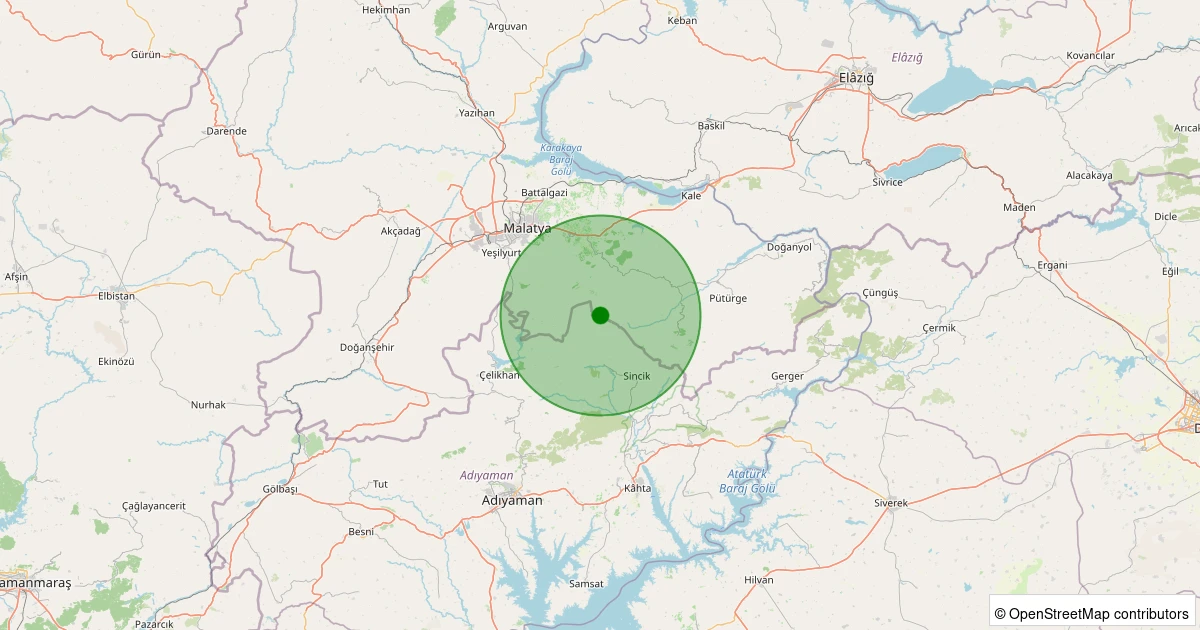 Son 7 gün içinde Battalgazi - Gülümuşağı Köyü noktasından 100 km yarıçap içerisinde meydana gelen diğer depremler: