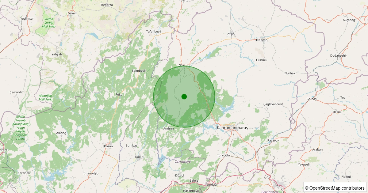 Son 7 gün içinde Göksun noktasından 100 km yarıçap içerisinde meydana gelen diğer depremler: