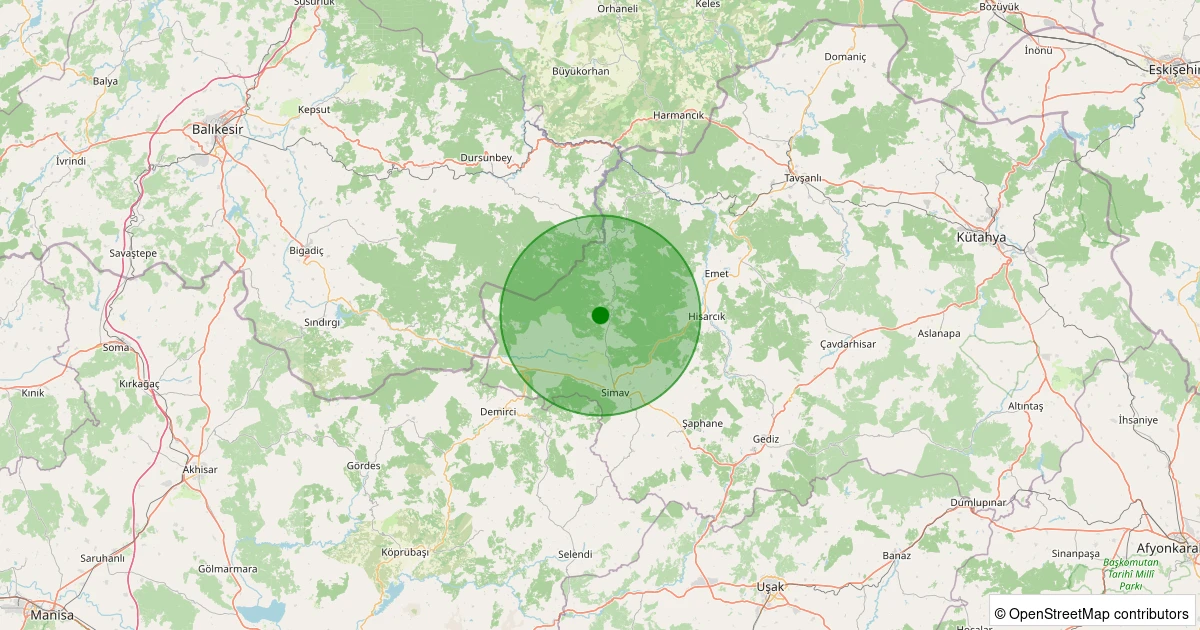 Son 7 gün içinde Simav - Maden Köyü noktasından 100 km yarıçap içerisinde meydana gelen diğer depremler: