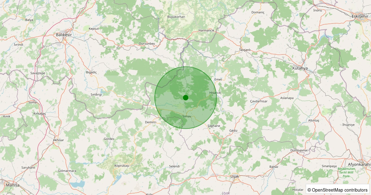 Son 7 gün içinde Simav - Yemişli Köyü noktasından 100 km yarıçap içerisinde meydana gelen diğer depremler:
