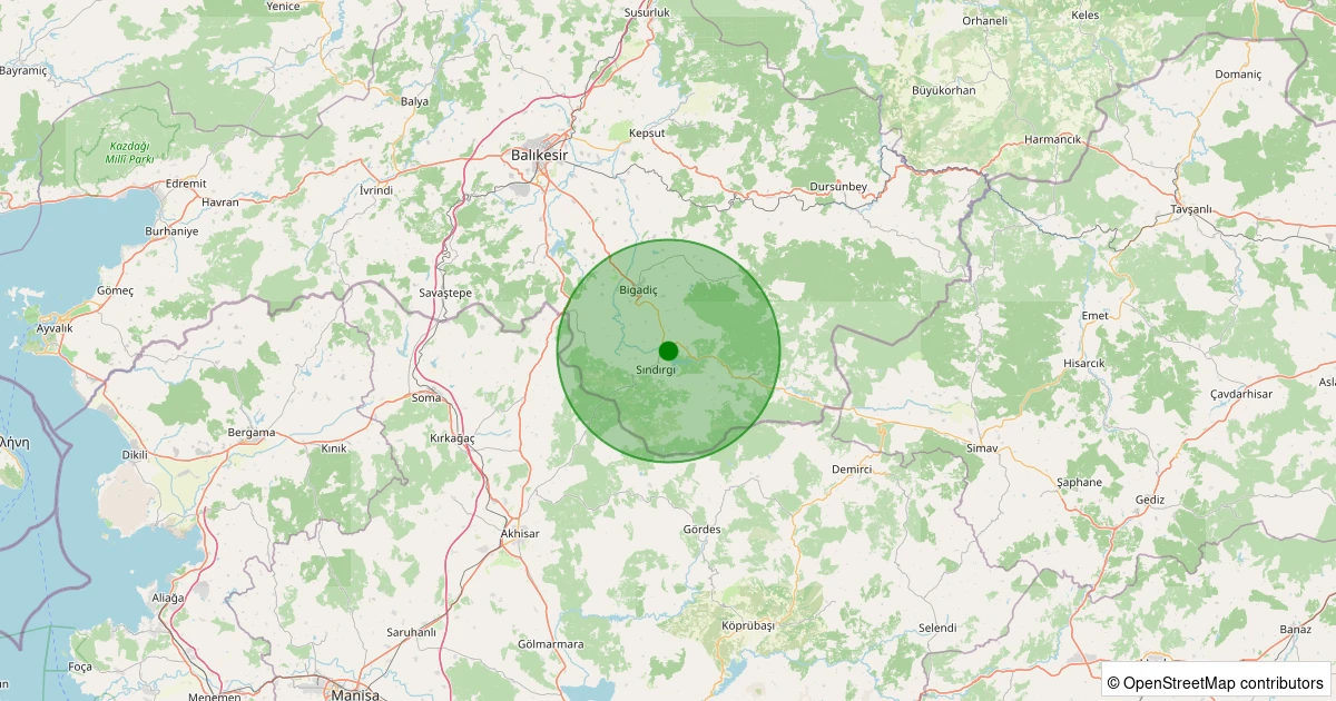 Son 7 gün içinde Sındırgı - Çaygören noktasından 100 km yarıçap içerisinde meydana gelen diğer depremler: