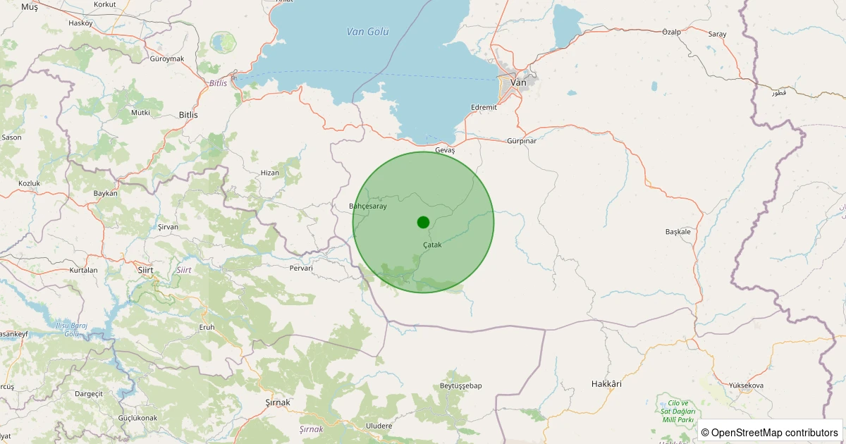 Son 7 gün içinde Çatak - Akçebük noktasından 100 km yarıçap içerisinde meydana gelen diğer depremler: