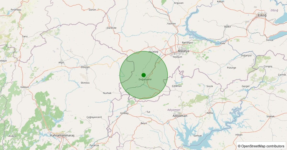 Son 7 gün içinde Doğanşehir - Yolkoru noktasından 100 km yarıçap içerisinde meydana gelen diğer depremler:
