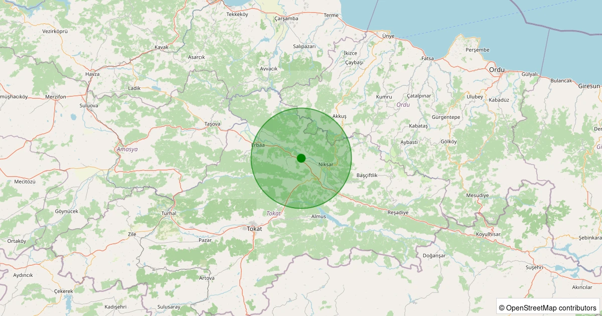 Son 7 gün içinde Niksar - Günlüce Köyü noktasından 100 km yarıçap içerisinde meydana gelen diğer depremler: