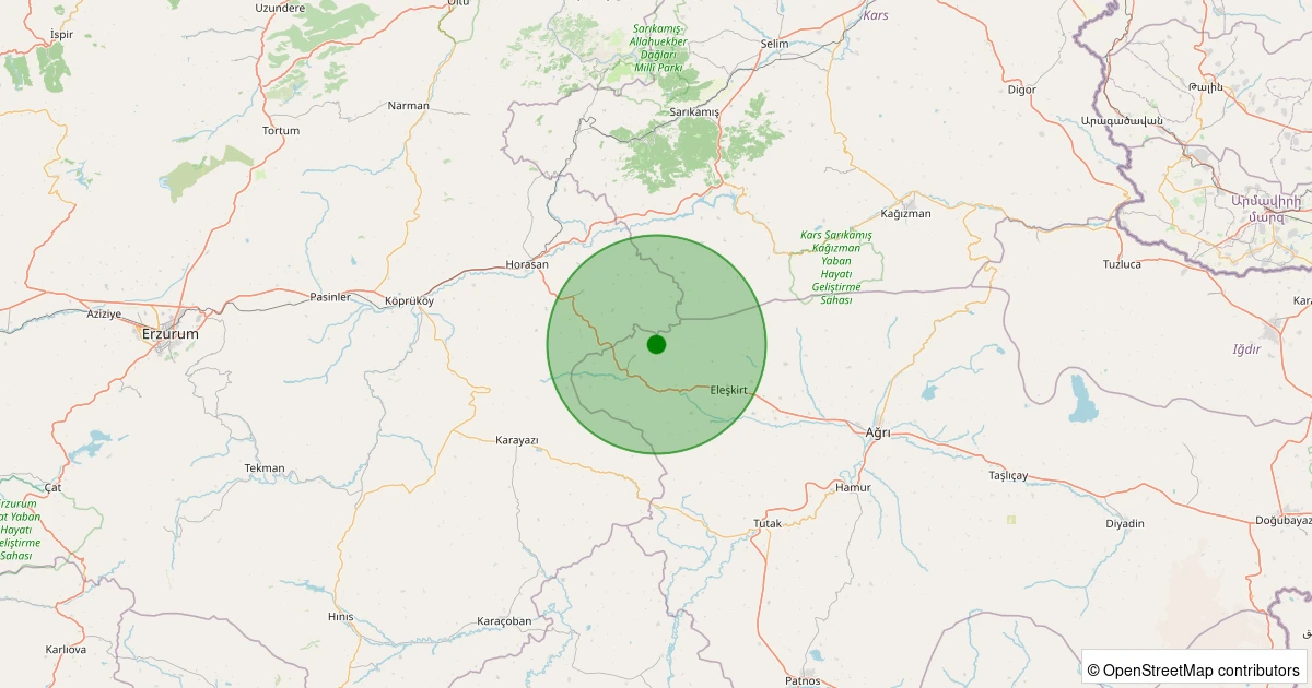 Son 7 gün içinde Eleşkirt - Tahir Köyü noktasından 100 km yarıçap içerisinde meydana gelen diğer depremler: