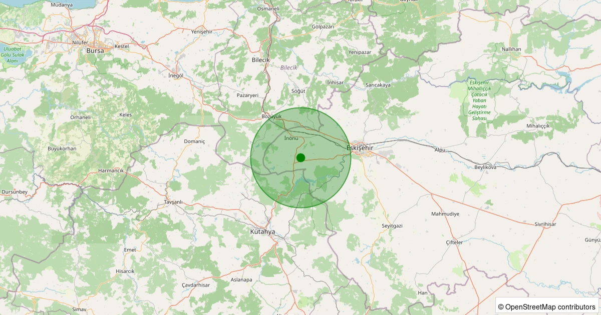 Son 7 gün içinde İnönü - Tutluca noktasından 100 km yarıçap içerisinde meydana gelen diğer depremler: