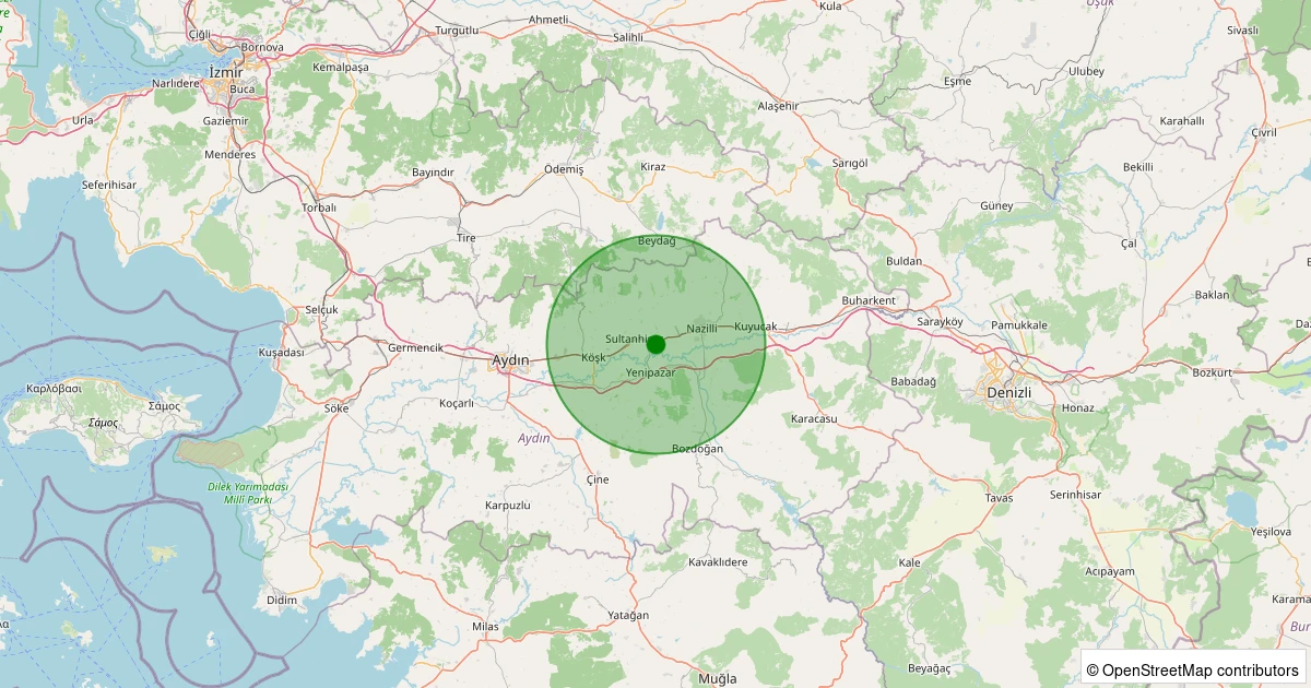 Son 7 gün içinde Sultanhisar - Atça noktasından 100 km yarıçap içerisinde meydana gelen diğer depremler: