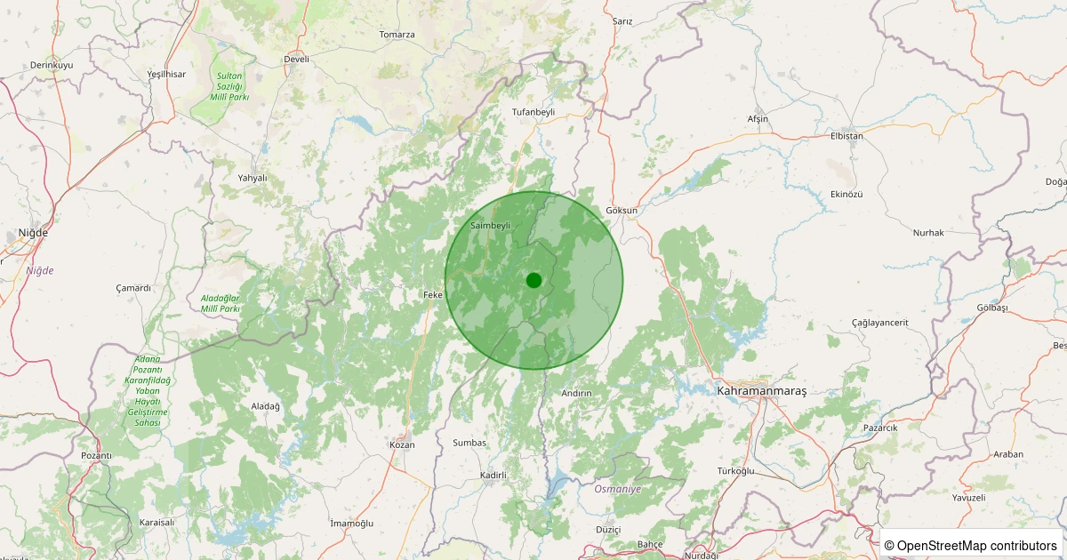 Son 7 gün içinde Saimbeyli - Karakuyu noktasından 100 km yarıçap içerisinde meydana gelen diğer depremler: