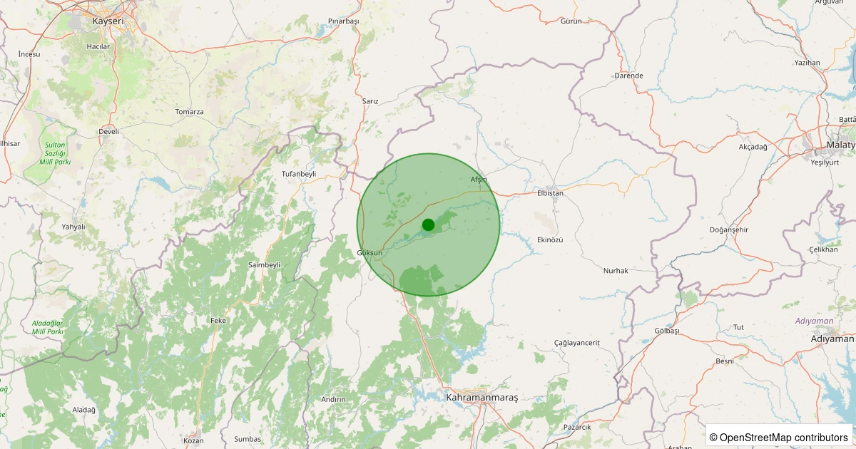 Son 7 gün içinde Göksun - Karaömer noktasından 100 km yarıçap içerisinde meydana gelen diğer depremler: