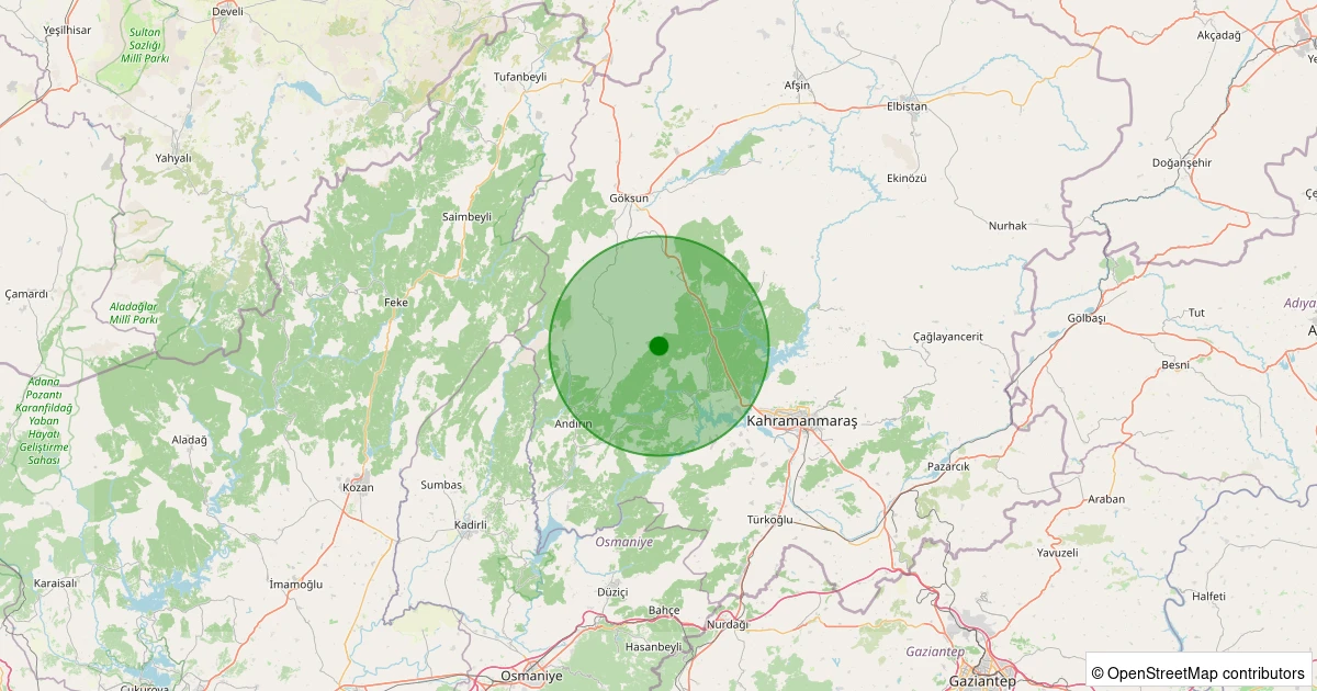 Son 7 gün içinde Onikişubat - Köşürge noktasından 100 km yarıçap içerisinde meydana gelen diğer depremler: