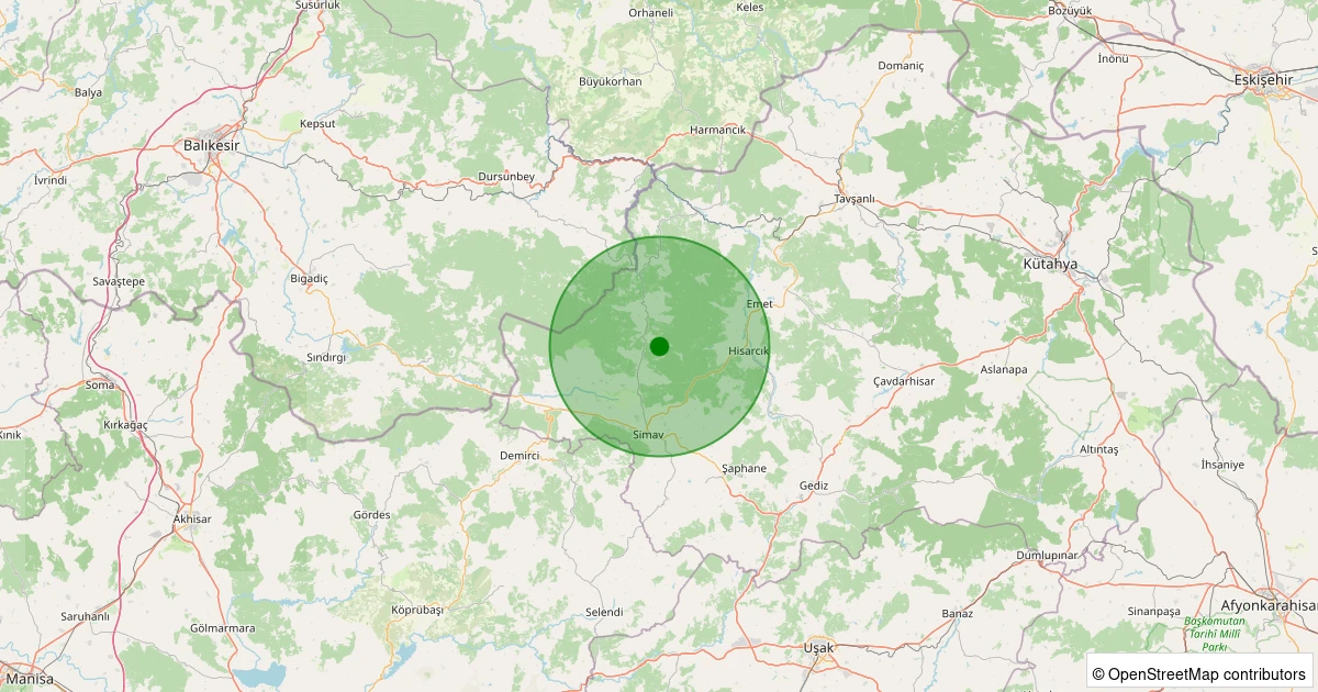 Son 7 gün içinde Simav - Yeşildere Köyü noktasından 100 km yarıçap içerisinde meydana gelen diğer depremler: