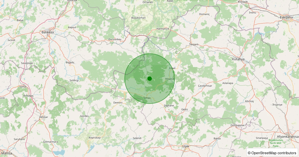Son 7 gün içinde Simav - Maden Köyü noktasından 100 km yarıçap içerisinde meydana gelen diğer depremler: