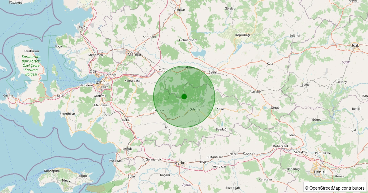 Son 7 gün içinde Ödemiş - Köseler noktasından 100 km yarıçap içerisinde meydana gelen diğer depremler: