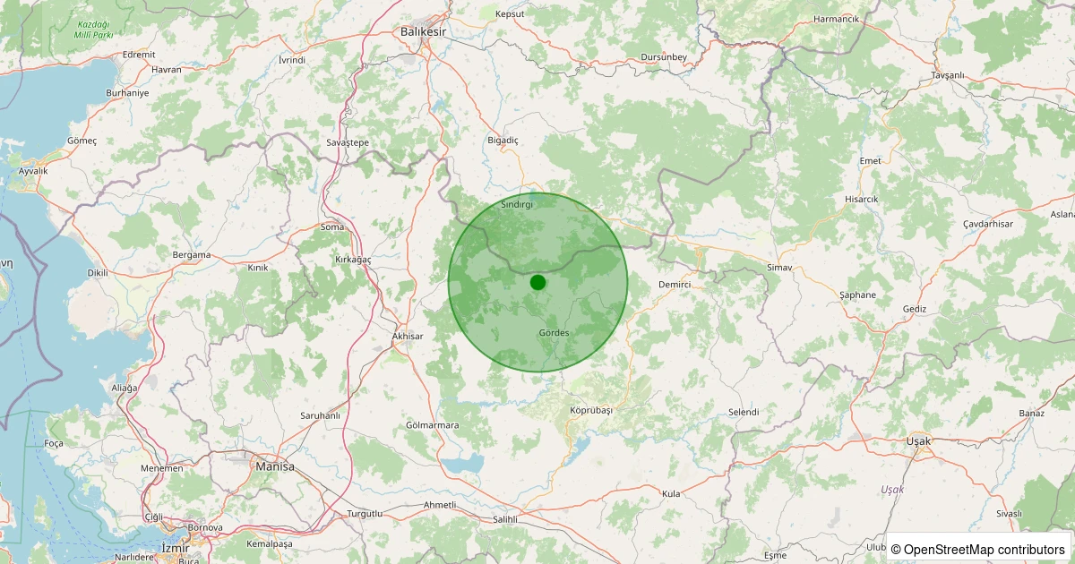 Son 7 gün içinde Gördes - Dutluca noktasından 100 km yarıçap içerisinde meydana gelen diğer depremler: