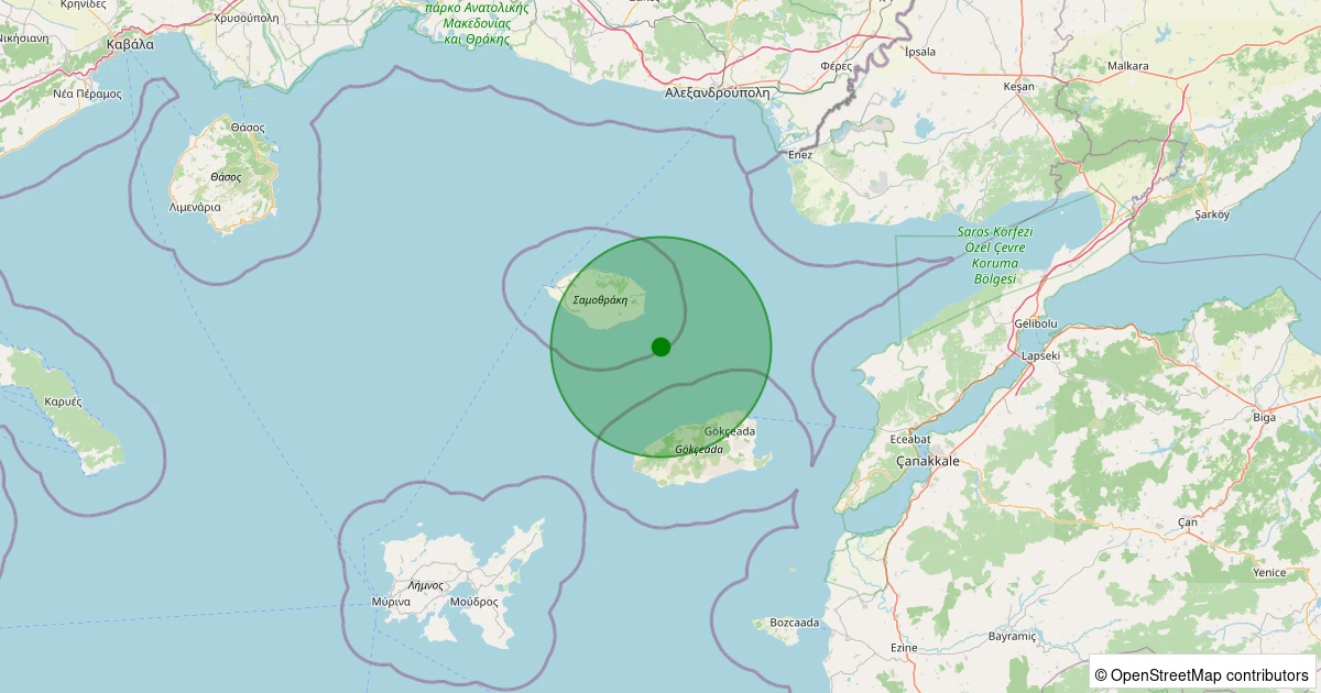Son 7 gün içinde Ege Denizi - [19.88 km] Gökçeada (Çanakkale) noktasından 100 km yarıçap içerisinde meydana gelen diğer depremler:
