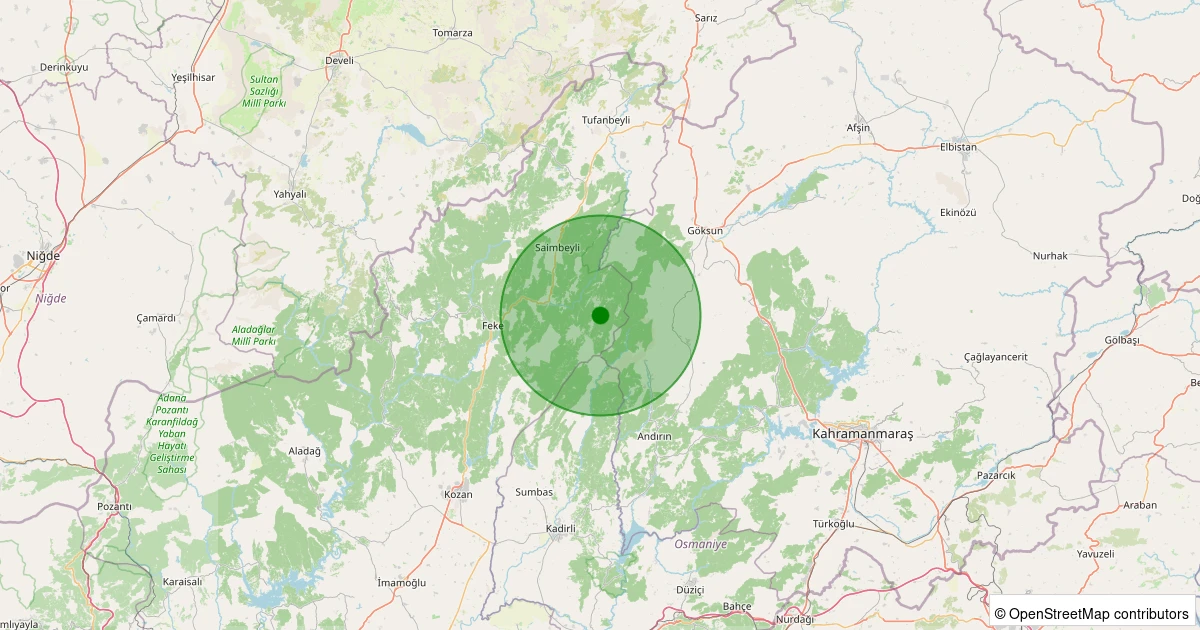 Son 7 gün içinde Saimbeyli - Kapaklıkuyu noktasından 100 km yarıçap içerisinde meydana gelen diğer depremler: